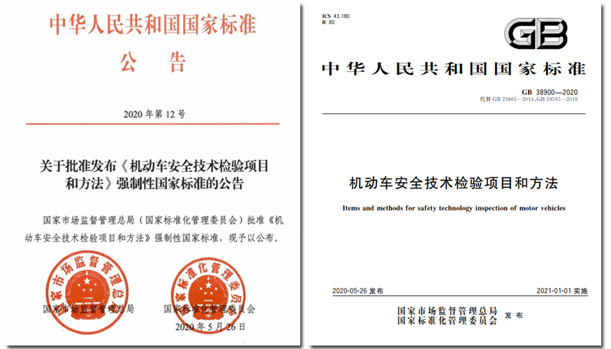 2020年5月26日,国家市场监督管理总局批准发布了新的强制性国家标准,《机动车安全技术检验项目和方法》,新标准将于2021年1月1日实施。